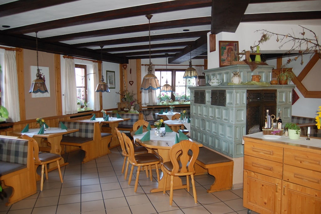 Entspannung und Muße finden Sie in unseren rustikalen Gasträumen und am romantischen Kachelofen.